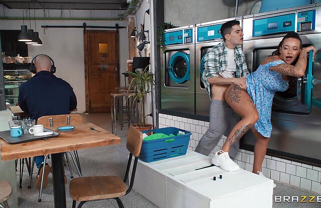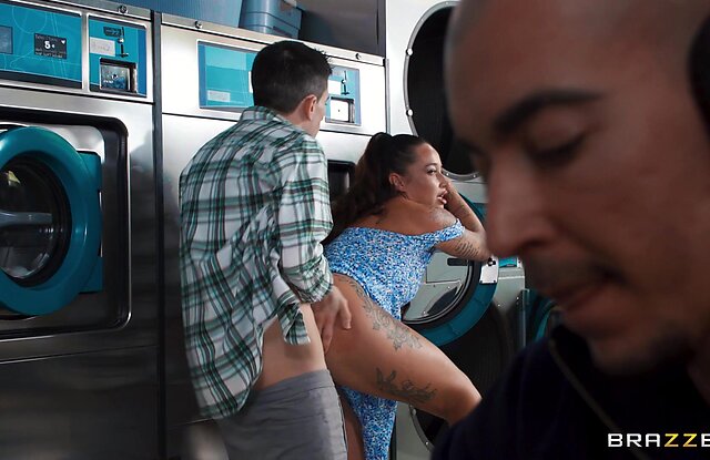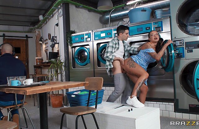 Порно онлайн: Привлекательная латинка Katty Soarez заглянула в прачечную что бы постирать свои грязные трусики и там её ждал сюрприз! Джорди прознав что Кетти была без белья, подбежал к ней и присев поднял плать и стал лизать её киску. Девушка даже не успела отолкнуть его и это было не зря. После куни, Кетти отсосала парнише и затем отдалась ему прямо в общей комнате.