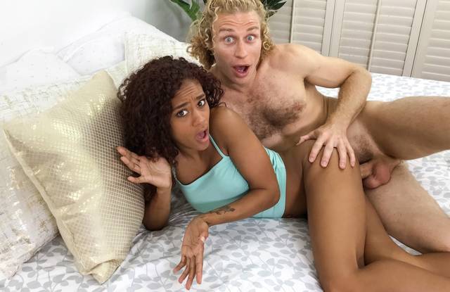 Порно онлайн: Темнокожая красотка оказалась очень похотливой сучкой. Она соблазнила сводную сестрицу и дала ей отсосать свой страпон, чтобы потом отыметь ее в киску. Но их свидание не состоялось, так как цыпочка отвлеклась на сводного брата и решила попробовать его член. Красотка трахается с братом в постели, где ее едва не застукала брюнетка.