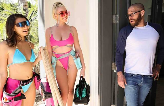 Порно онлайн: Ксандер Корвус был ошеломлен, когда красотки в бикини Кендра Сандерленд и Майя Вулф приезжают к нему на работу. Когда их большие сиськи подпрыгивают, а задницы трясутся во время работы, Ксандер очень возбуждается и начинает намекать красоткам на секс. Девушки берут заслуженный перерыв и соблазняют Ксандера, что приводит к дикой групповухе, которая оставит его довольным работой, несмотря на то, что они толком ничего и не сделали.
